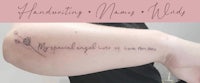 Tattooing your loved one's handwriting from cards, signatures, letters or tattooing their names and dates can illustrate your bond and create a special memory that offers connection and comfort.